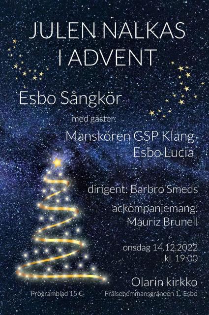 Onsdag 14.12.2022 klockan 19:00 i Olarin kirkko, Olars.Läs mera »