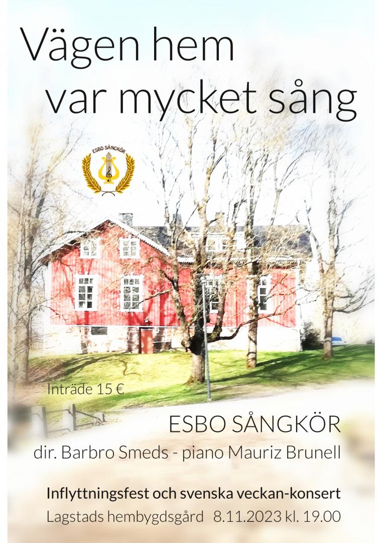Svenska veckan-konsert och inflyttningsfest i Lagstads hembygdsgård onsdag 8.11.2023.