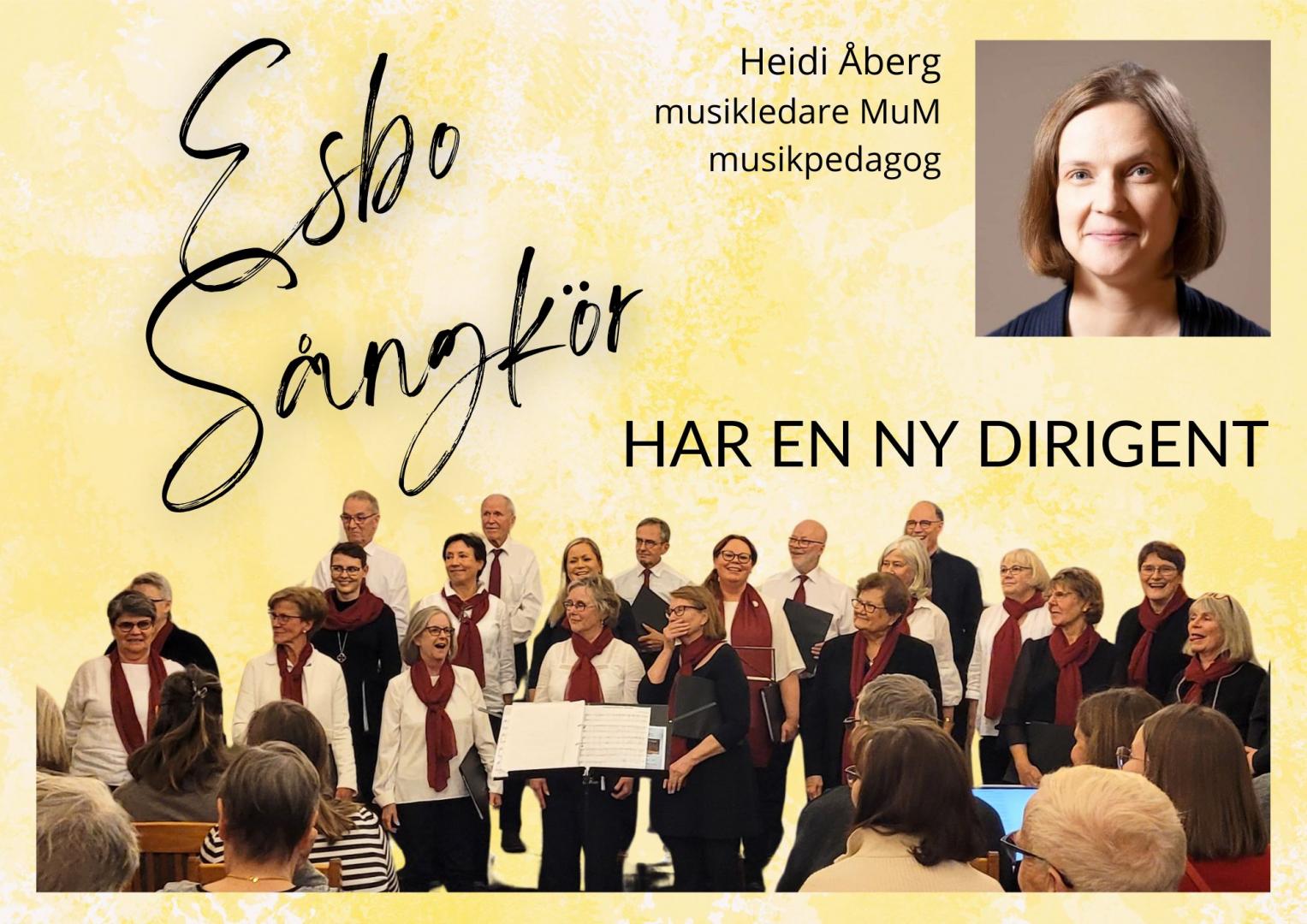 I höst inleder Esbo Sångkör ett nytt kapitel i sin långa historia. Mångåriga dirigenten Barbro Smeds har valt att stiga åt sidan, och i hennes ställe har kören utsett musikmagistern och sångpedagogen Heidi Åberg.